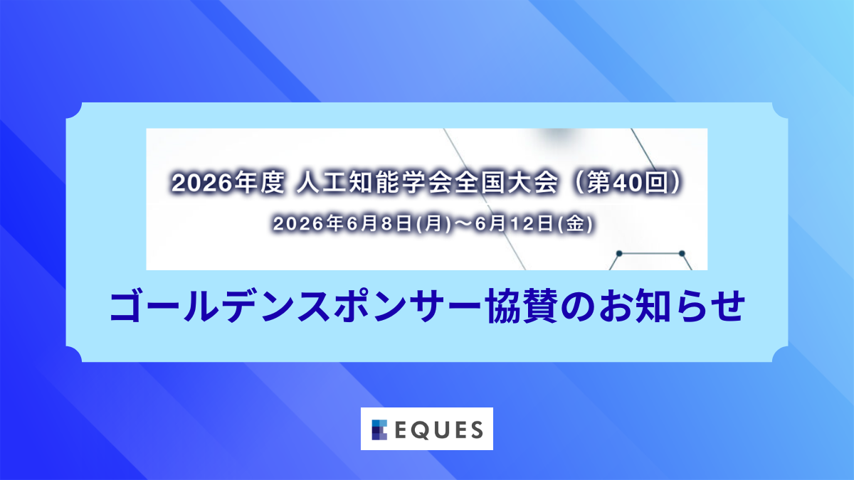 東大松尾研発スタートアップの株式会社EQUESは、2026年6月に開催される「2026年度 人工知能学会全国大会(第40回 JSAI2026)」において、ゴールドスポンサーとして協賛することをお知らせいたします。